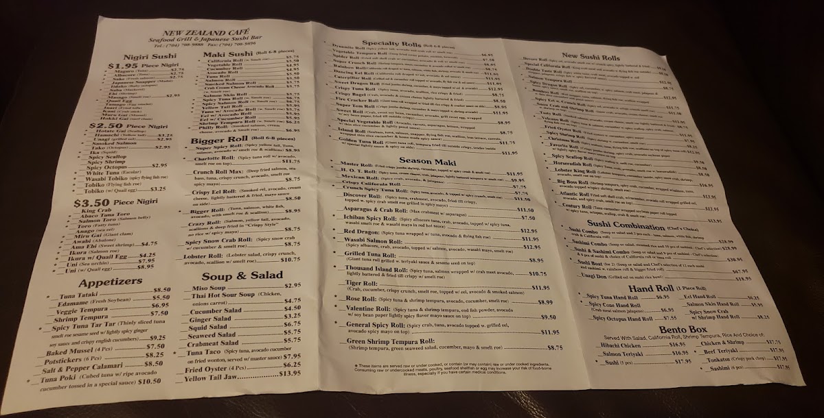 Welcome to New Zealand Cafe, your premier sushi destination nestled in Charlotte, NC. This cozy eatery, located at 1717 Sardis Rd N, prides itself on serving authentic Japanese cuisine with a personal touch. Each dish reflects a passion for quality and flavor, from their satisfying Bento Boxes featuring Salmon Teriyaki and Tonkatsu to delightful sushi rolls like the Master Roll and Boss Roll, highly praised by loyal patrons.